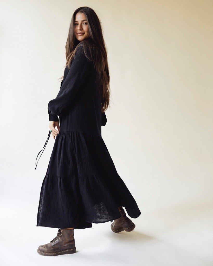 “This dress feels like a magic cloak in which I feel ready for whatever the day will bring me. The soft fabric flows beautifully and I love the details, the shape of the sleeve and the little mother of pearl buttons.” - Merle Bergers